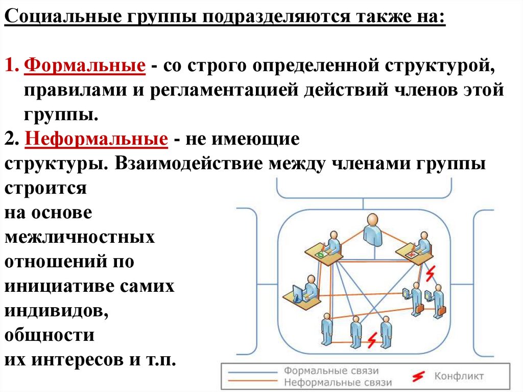 Социальные группы подразделяются также на:1. Формальные - со строго определенной структурой,