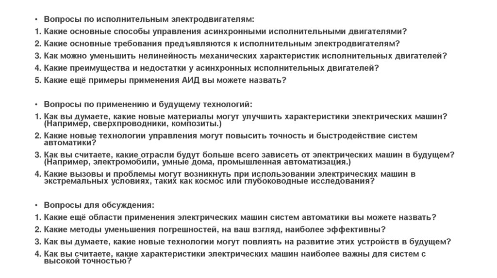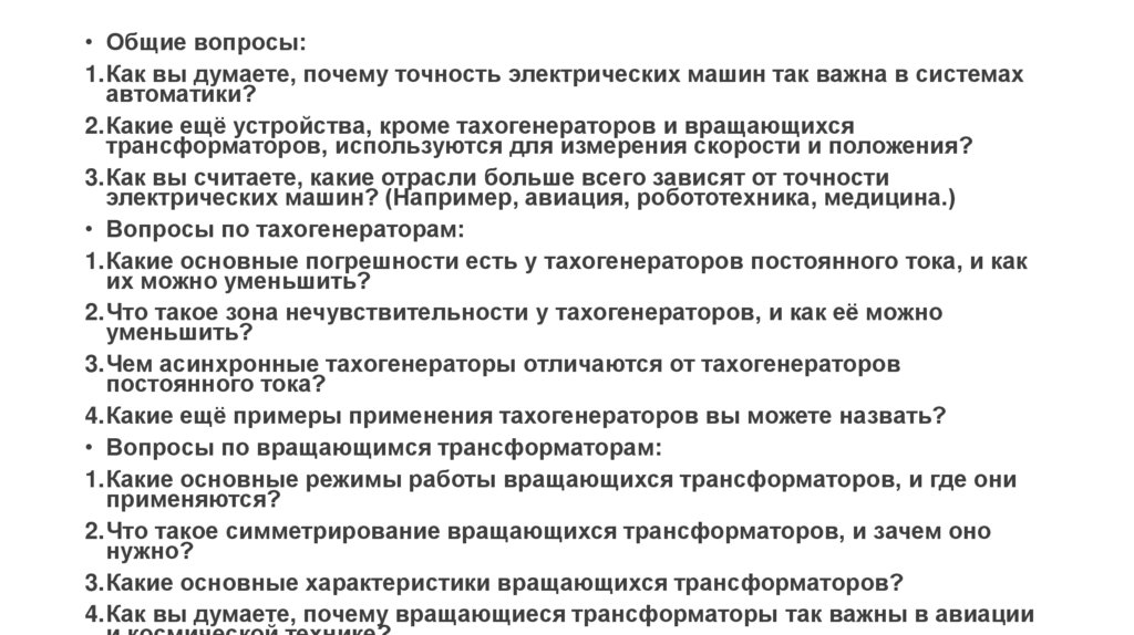 • Общие вопросы:1.Как вы думаете, почему точность электрических машин так важна в системах