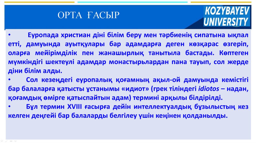 ОРТА ҒАСЫРЕуропада христиан діні білім беру мен тәрбиенің сипатына ықпал