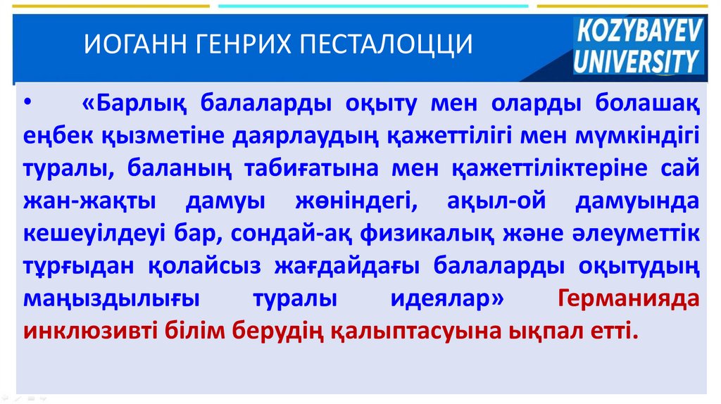 ИОГАНН ГЕНРИХ ПЕСТАЛОЦЦИ«Барлық балаларды оқыту мен оларды болашақ