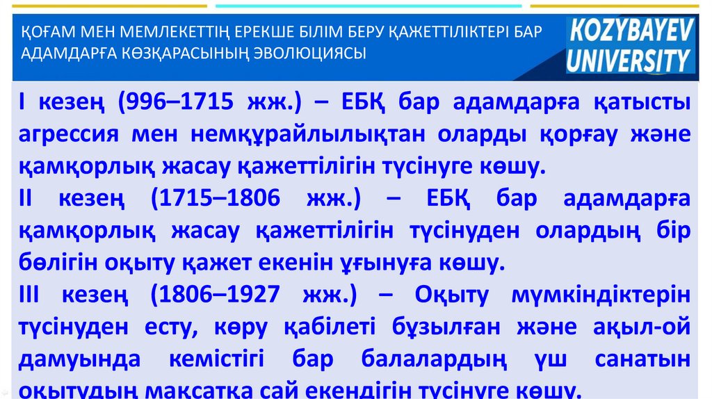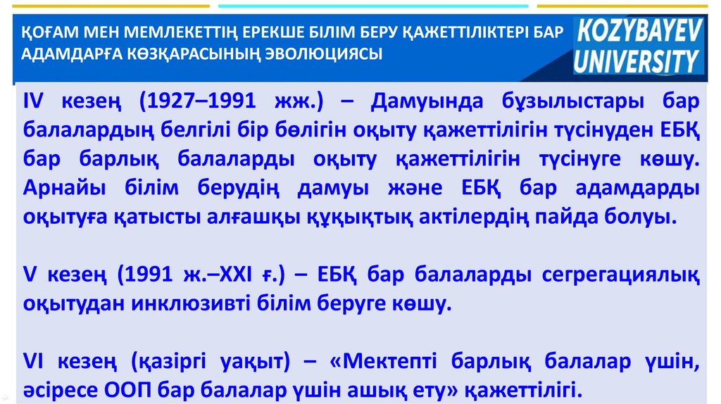 ҚОҒАМ МЕН МЕМЛЕКЕТТІҢ ЕРЕКШЕ БІЛІМ БЕРУ ҚАЖЕТТІЛІКТЕРІ БАРАДАМДАРҒА КӨЗҚАРАСЫНЫҢ ЭВОЛЮЦИЯСЫ