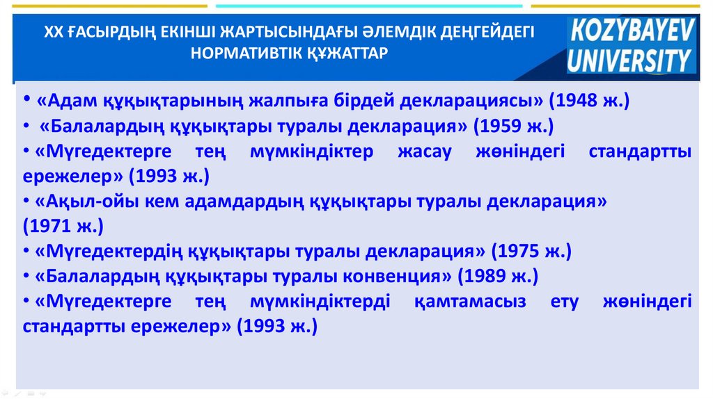 XX ҒАСЫРДЫҢ ЕКІНШІ ЖАРТЫСЫНДАҒЫ ӘЛЕМДІК ДЕҢГЕЙДЕГІНОРМАТИВТІК ҚҰЖАТТАР