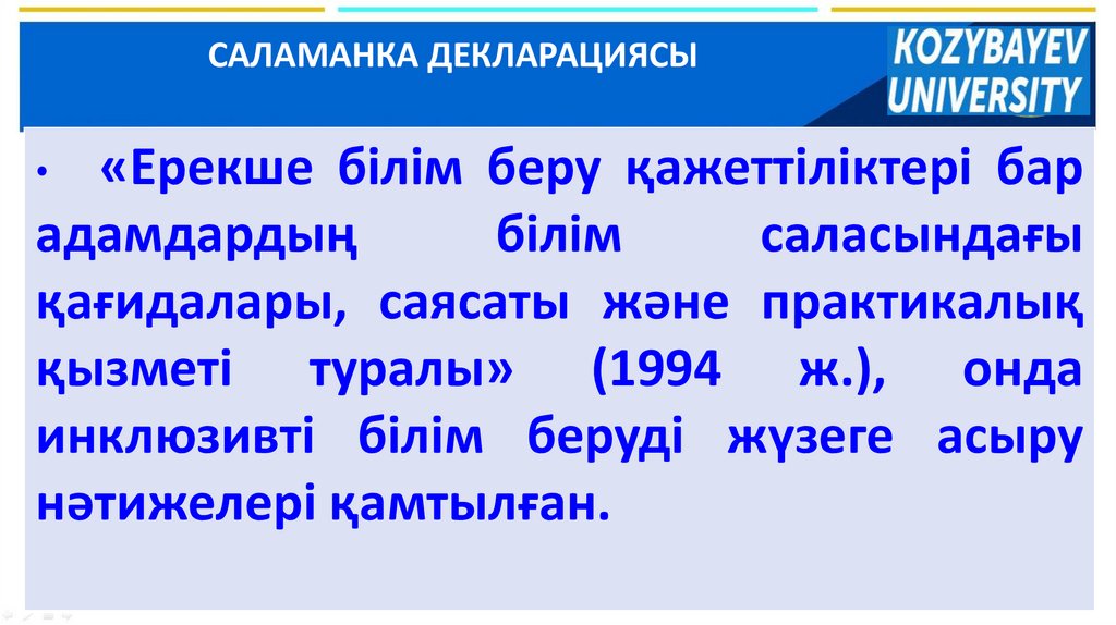 САЛАМАНКА ДЕКЛАРАЦИЯСЫ«Ерекше білім беру қажеттіліктері бар