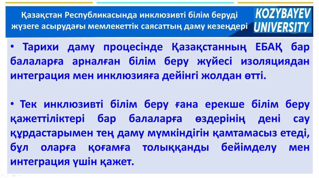 инклюзивті білім берудің қалыптасуына ықпал етті.