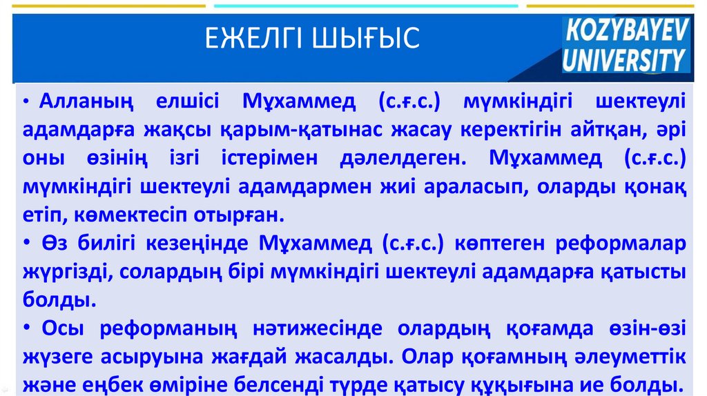 оны өзінің ізгі істерімен дәлелдеген. Мұхаммед (с.ғ.с.)