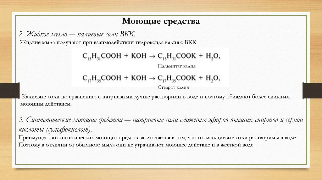 Моющие средства2. Жидкое мыло ― калиевые соли ВКК.