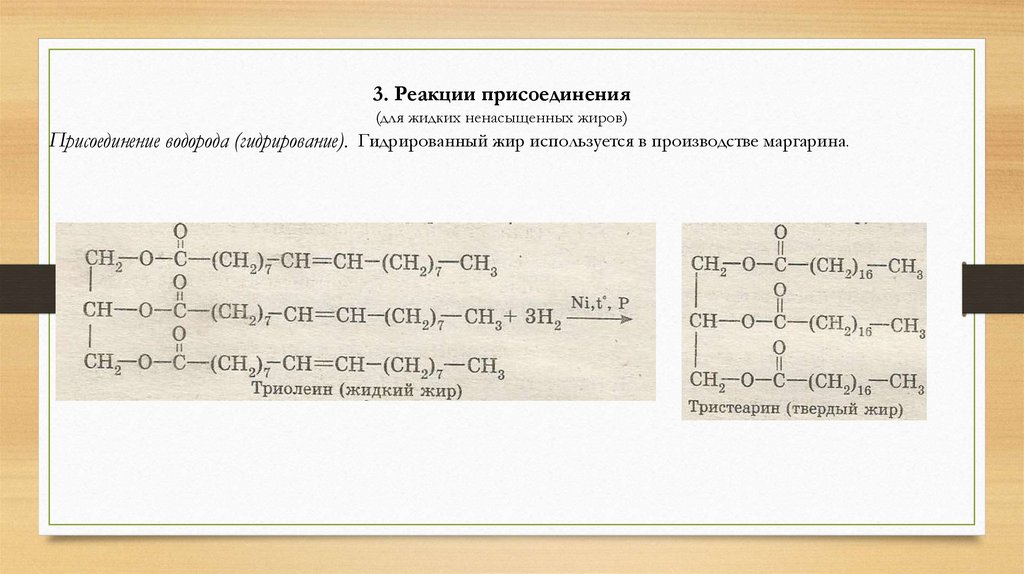 3. Реакции присоединения(для жидких ненасыщенных жиров)
