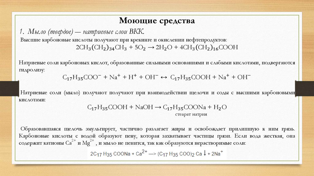 Моющие средства1. Мыло (твердое) ― натриевые слои ВКК.