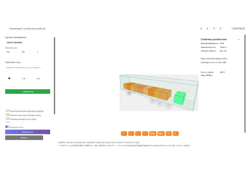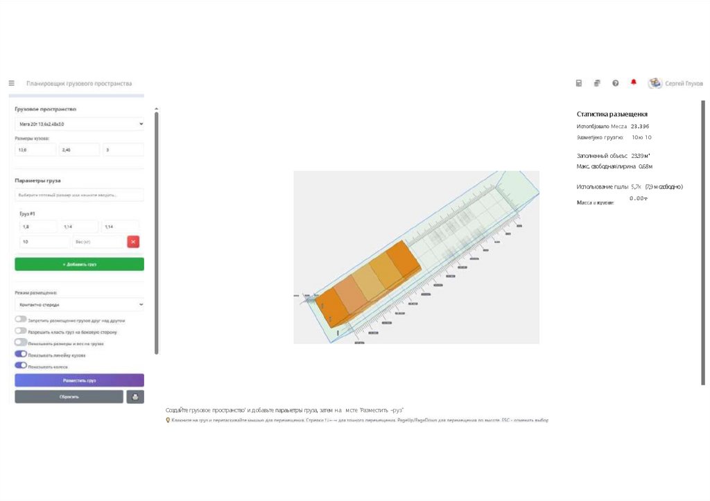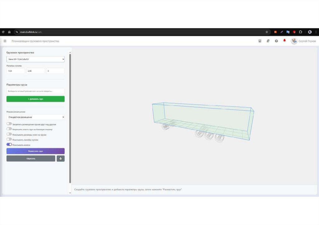 Сотдайте грузовое пространство и добавьте параметры груза, затем нажмите 'Разместить груз"