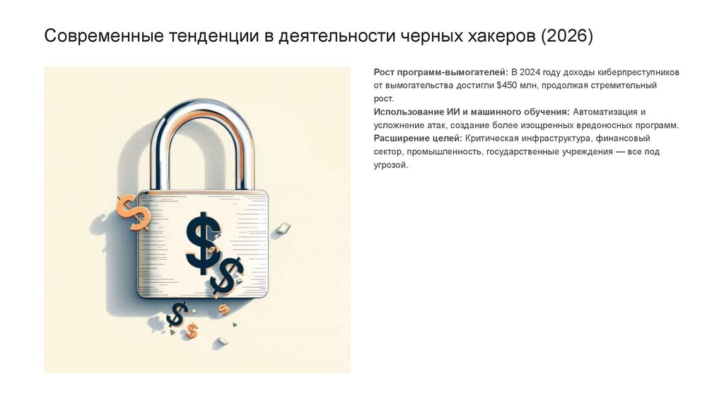 Современные тенденции в деятельности черных хакеров (2026)Рост программ-вымогателей: В 2024 году доходы киберпреступников