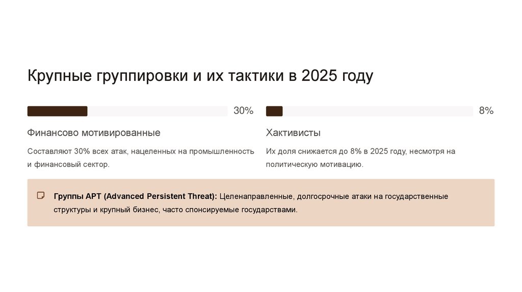 Крупные группировки и их тактики в 2025 году30%