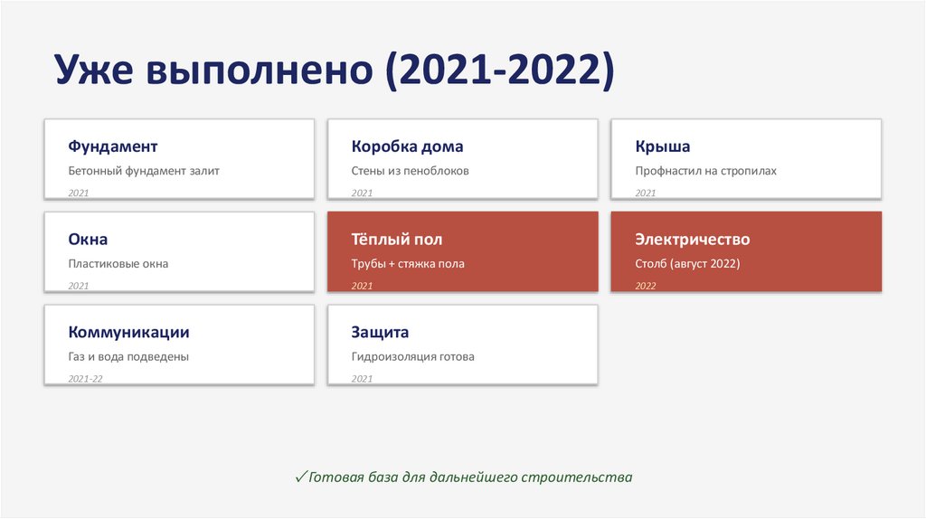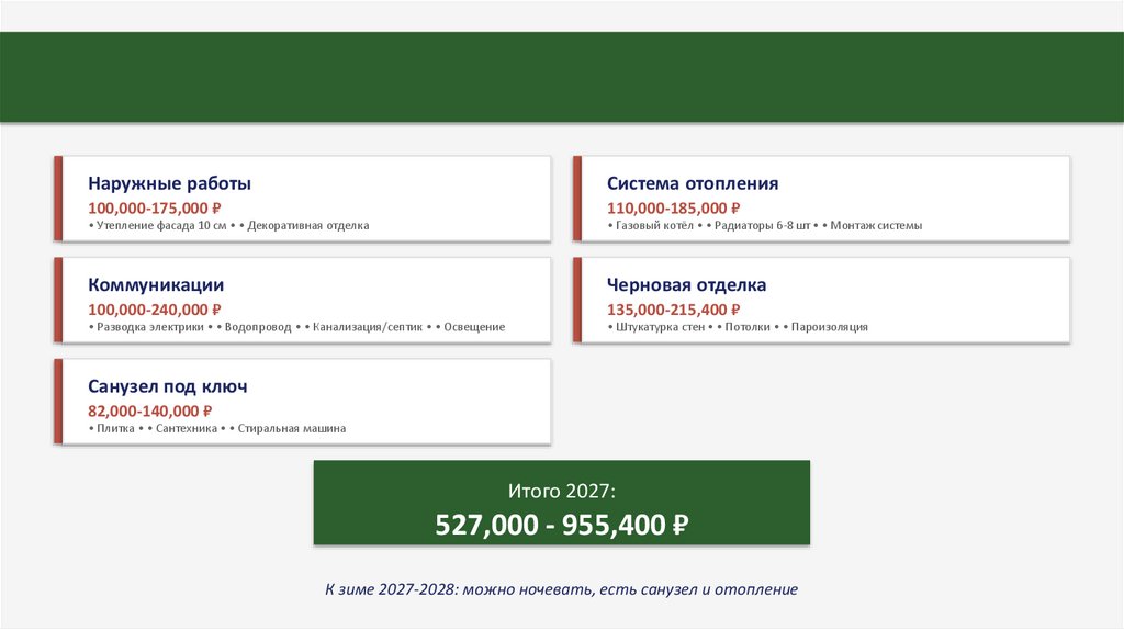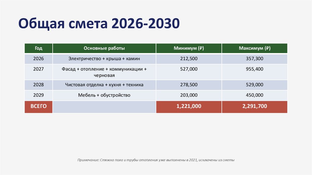 Примечание: Стяжка пола и трубы отопления уже выполнены в 2021, исключены из сметы