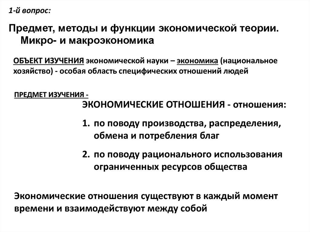 1-й вопрос:Предмет, методы и функции экономической теории.