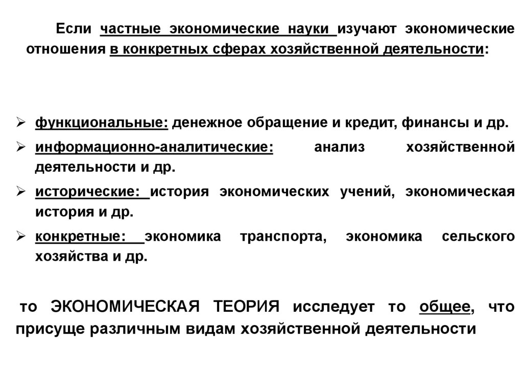 Если частные экономические науки изучают экономическиеотношения в конкретных сферах хозяйственной деятельности: