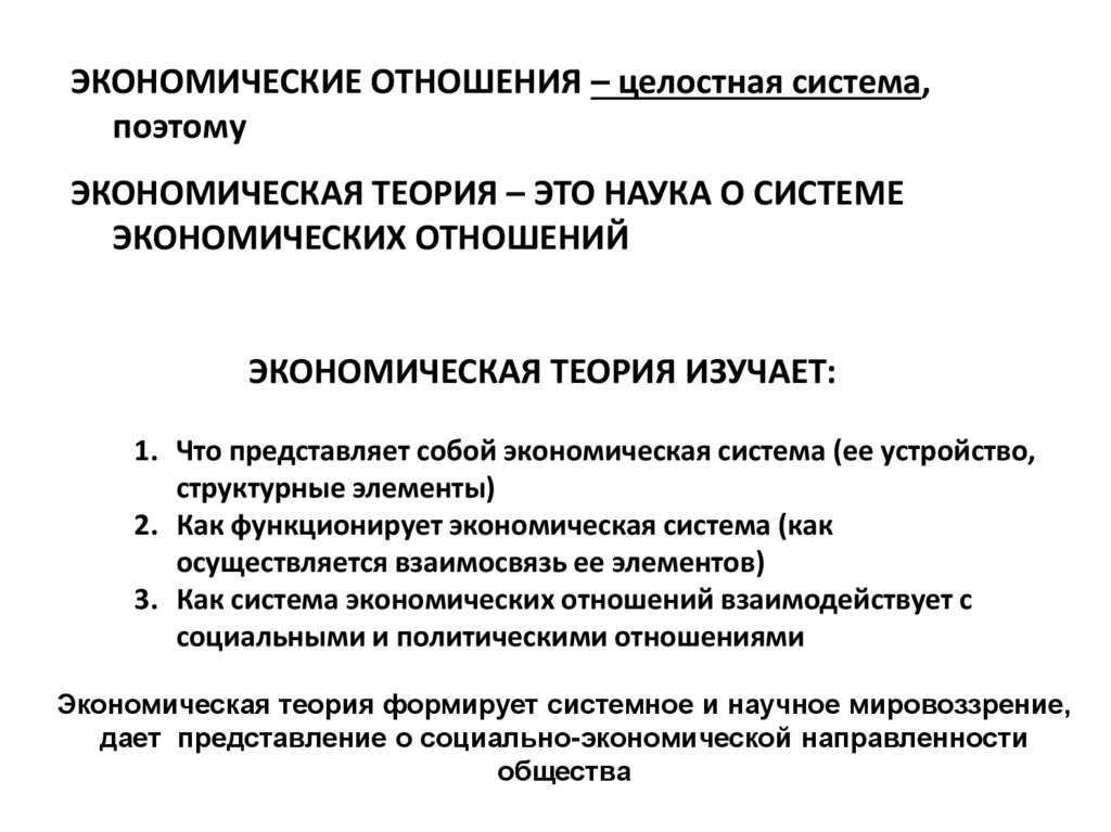 ЭКОНОМИЧЕСКАЯ ТЕОРИЯ – ЭТО НАУКА О СИСТЕМЕ