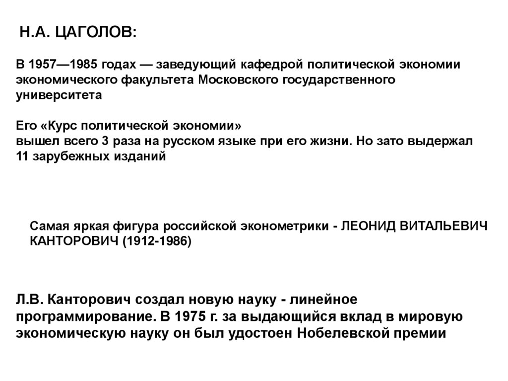 Н.А. ЦАГОЛОВ:В 1957—1985 годах — заведующий кафедрой политической экономии