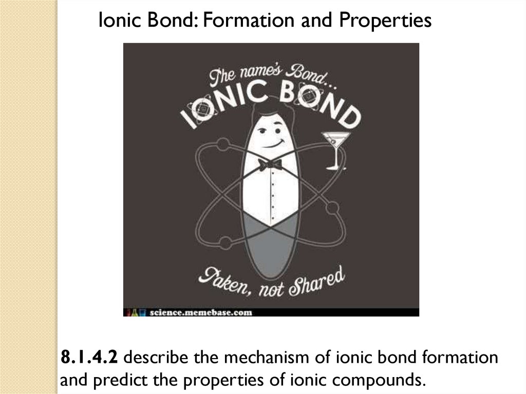 Ionic Bond: Formation and Properties8.1.4.2 describe the mechanism of ionic bond formation