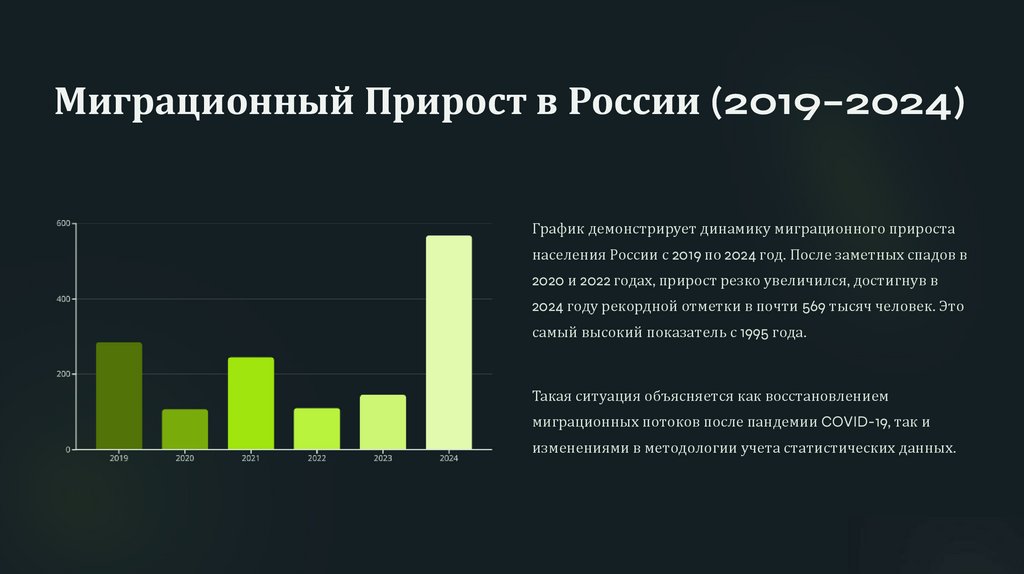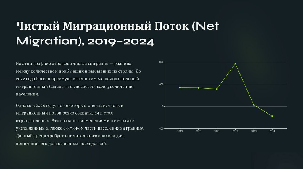 Миграционный Прирост в России (2019–2024)График демонстрирует динамику миграционного прироста
