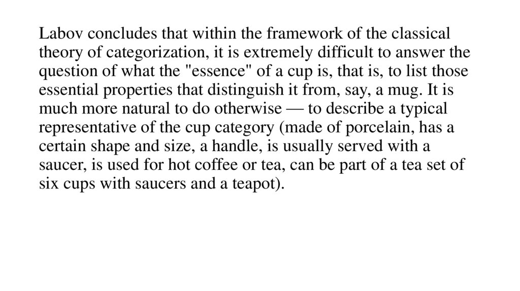 24. From its psycholinguistic origins, prototype theory has moved mainly in two directions.