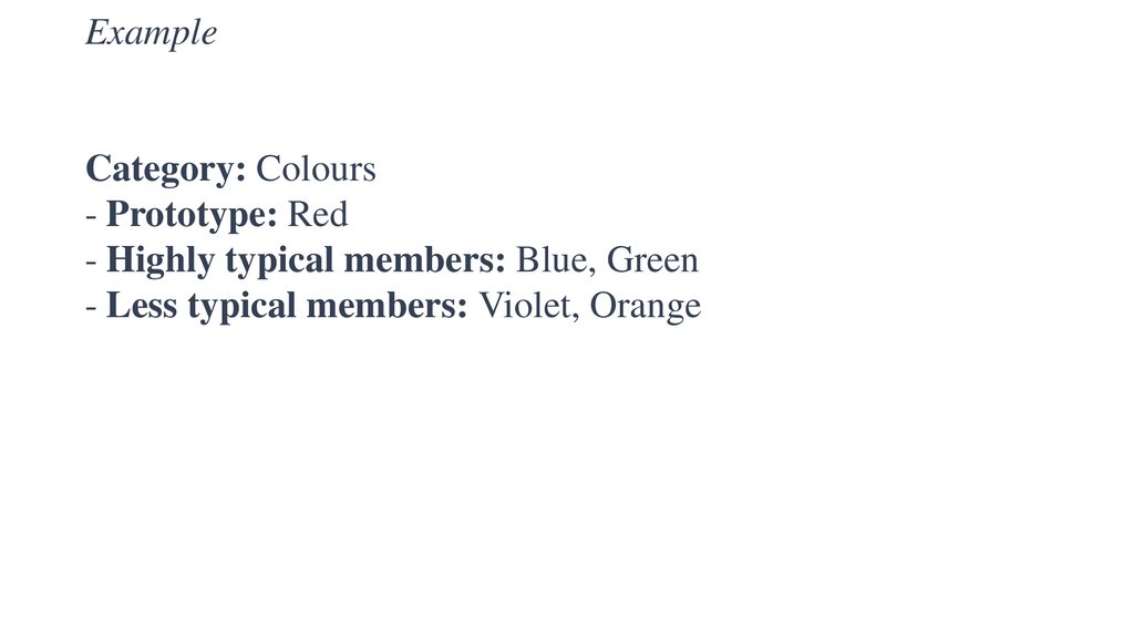 A prototype can be thought of as the best, most typicalexample of a category, and other items are considered part of