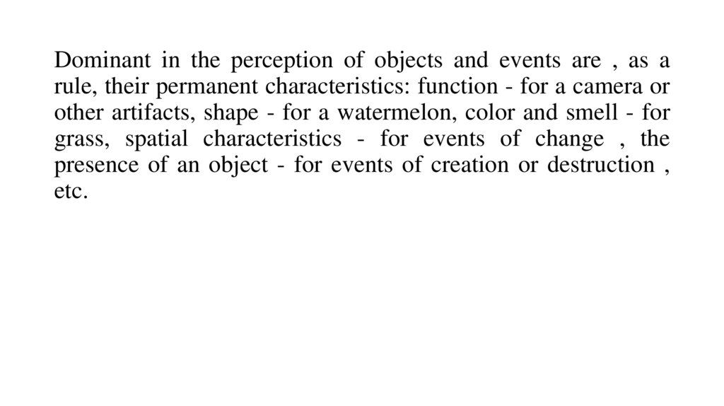 Dominant in the perception of objects and events are , as arule, their permanent characteristics: function - for a camera or