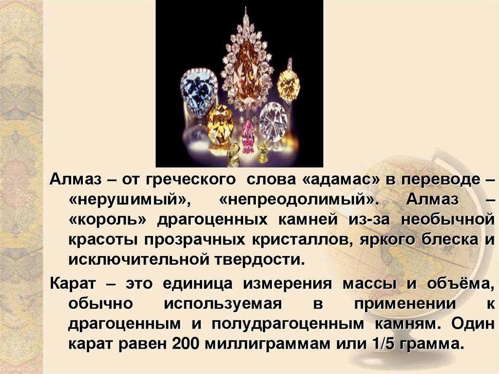 Алмаз – от греческого слова «адамас» в переводе –«нерушимый»,