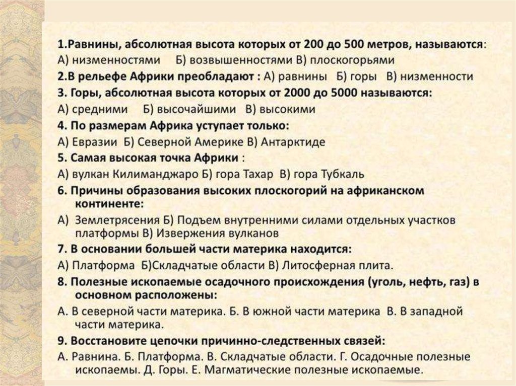 А) низменностями Б) возвышенностями В) плоскогорьями