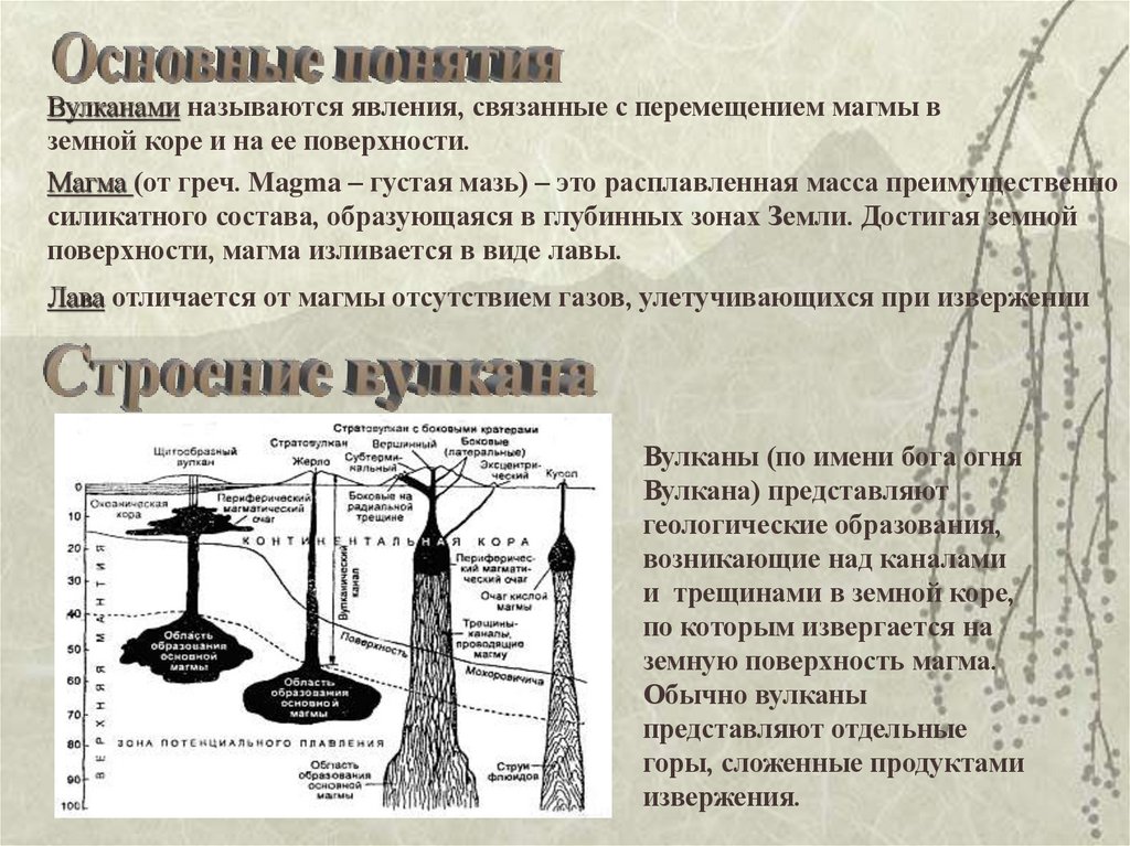 Вулканами называются явления, связанные с перемещением магмы вземной коре и на ее поверхности.