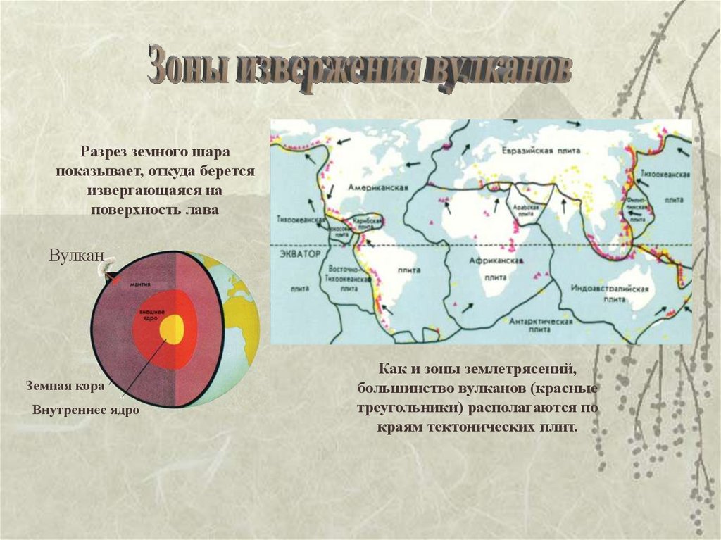 Разрез земного шарапоказывает, откуда берется