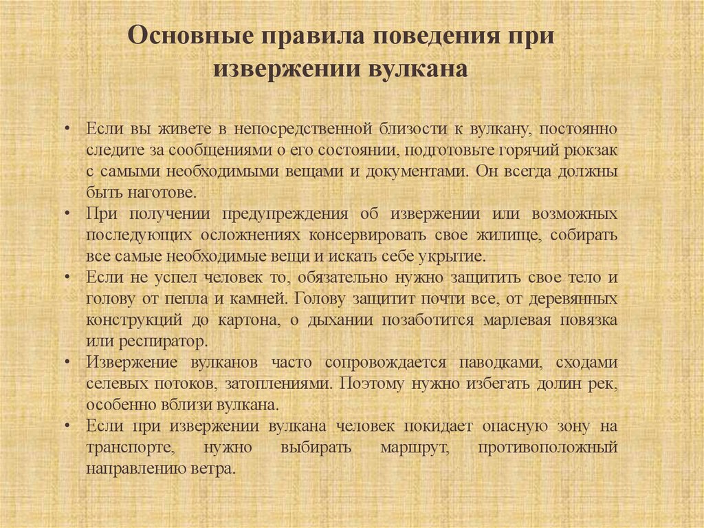 Основные правила поведения приизвержении вулкана
