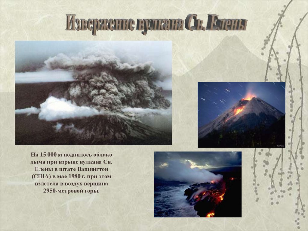 • Извержение вулканов часто сопровождается паводками, сходами