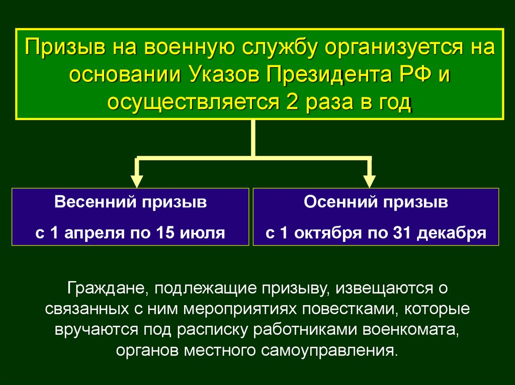 Призыв на военную службу организуется наосновании Указов Президента РФ и
