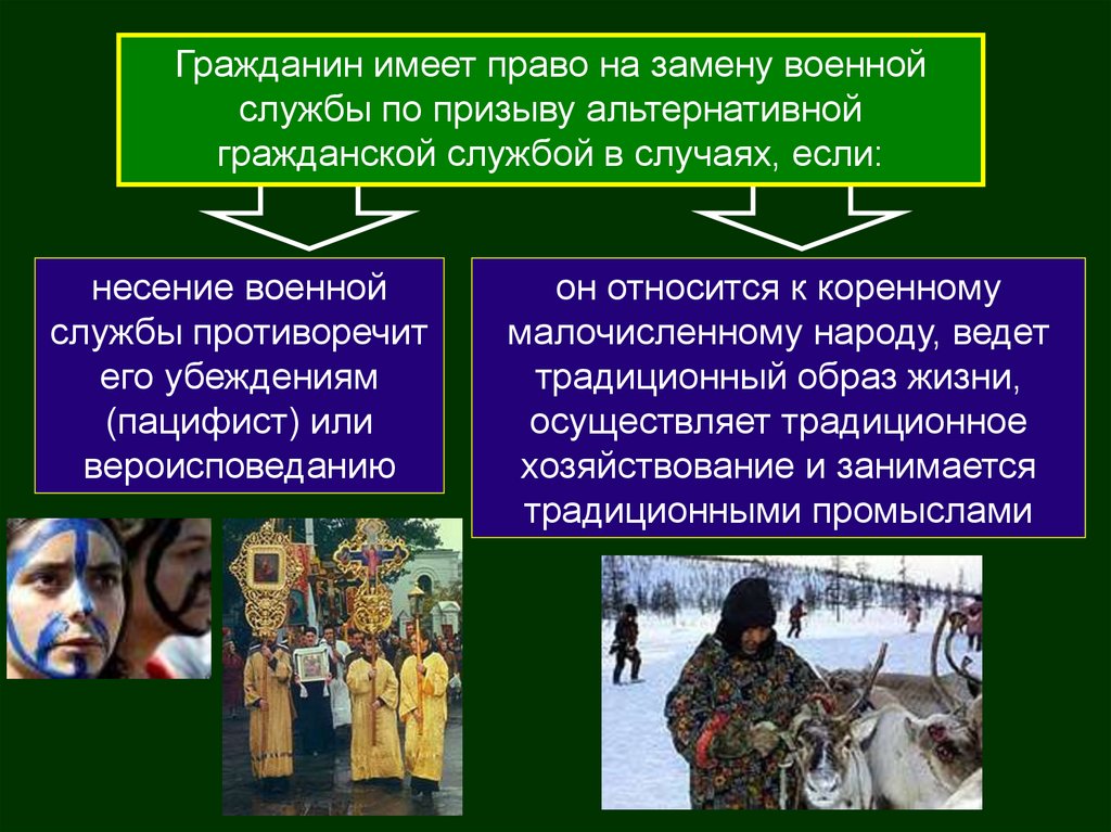 Гражданин имеет право на замену военнойслужбы по призыву альтернативной