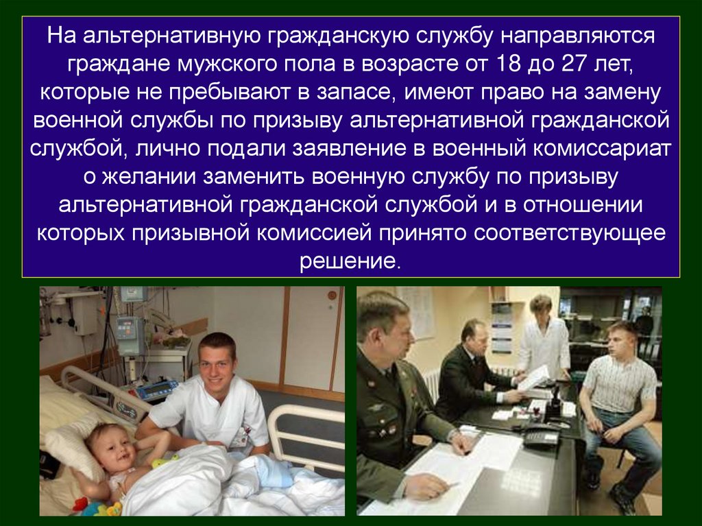 На альтернативную гражданскую службу направляютсяграждане мужского пола в возрасте от 18 до 27 лет,