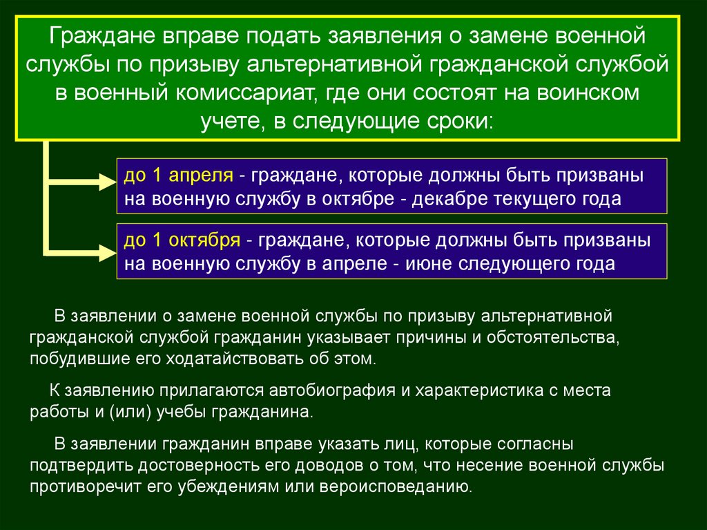 Граждане вправе подать заявления о замене военнойслужбы по призыву альтернативной гражданской службой