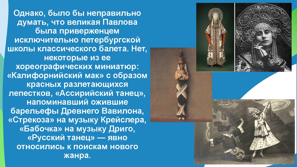 Однако, было бы неправильнодумать, что великая Павлова