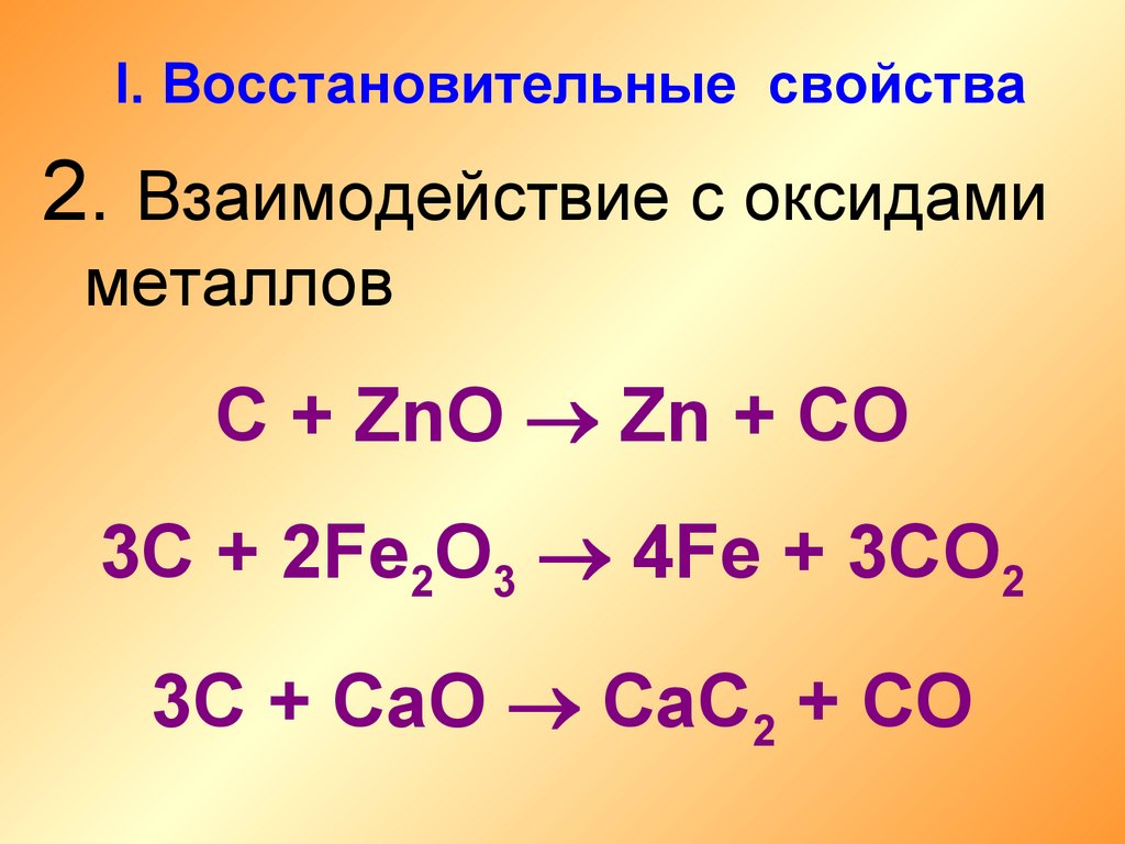 I. Восстановительные свойства2. Взаимодействие с оксидами