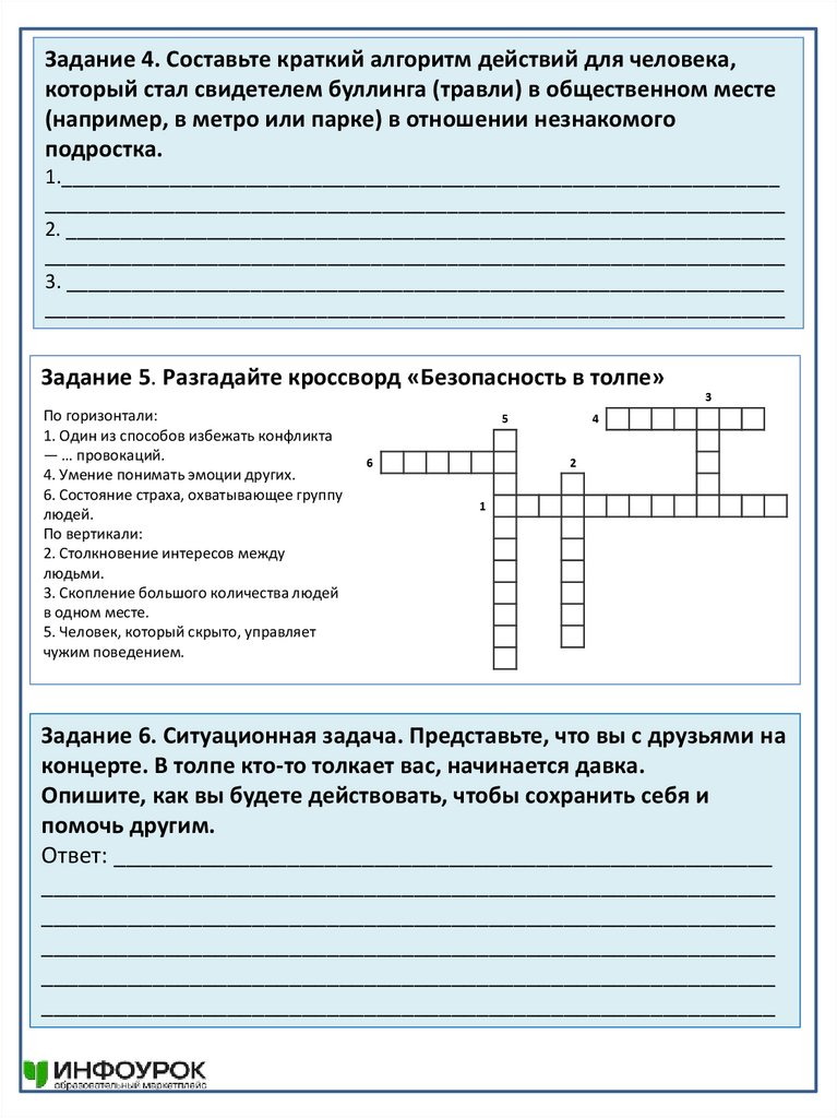 Задание 5. Разгадайте кроссворд «Безопасность в толпе»