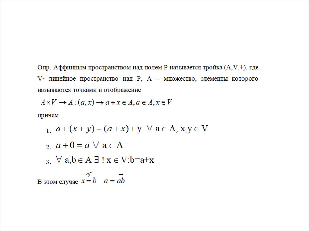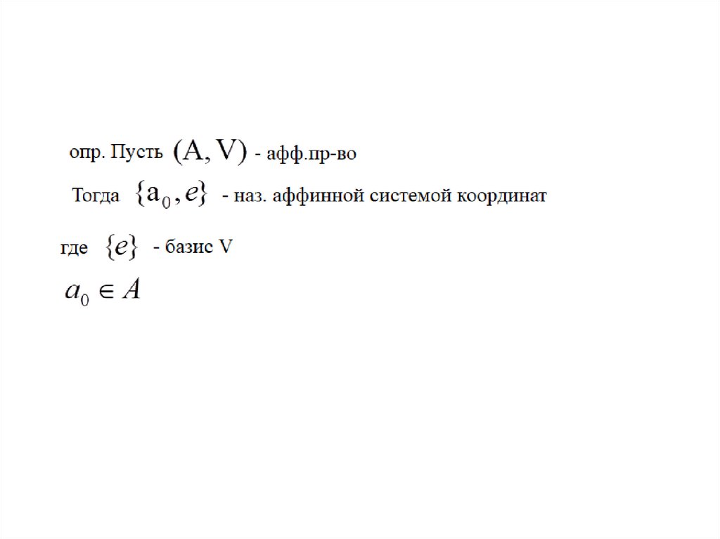 Соглашение. Для сокращения аффинное пространство будем обозначать в виде пары (A,V) либо просто А