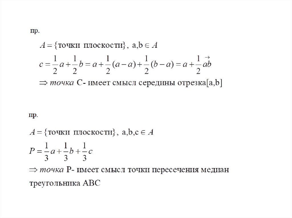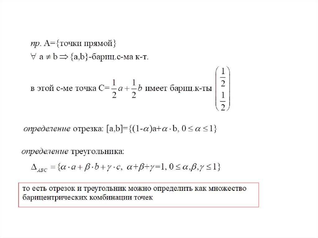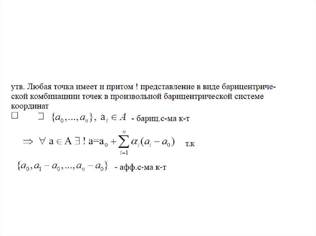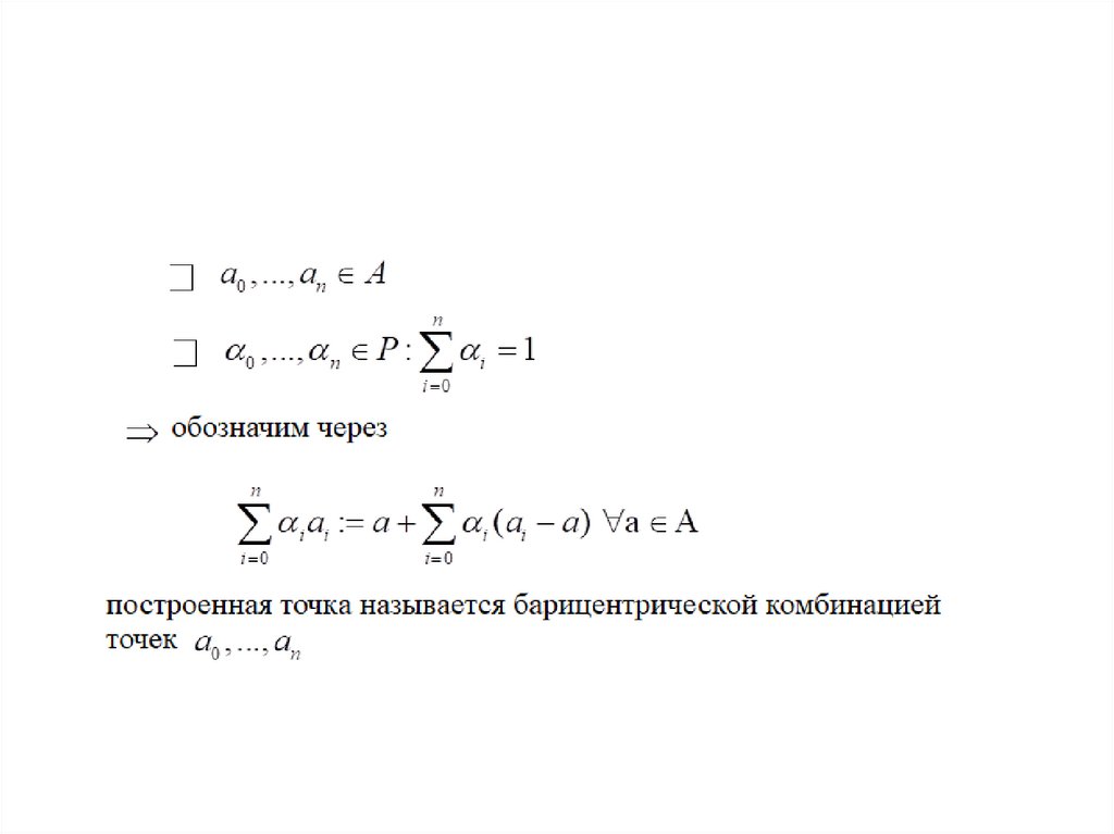 Утв. Определение барицентрической комбинации точек корректно, то есть не зависит от выбора точки а.