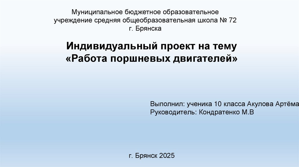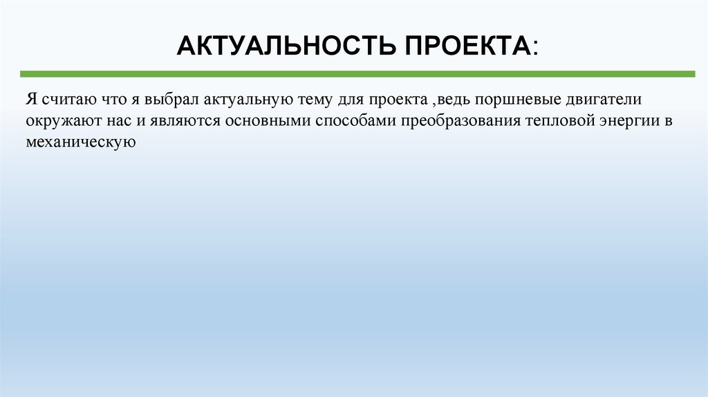 АКТУАЛЬНОСТЬ ПРОЕКТА:Я считаю что я выбрал актуальную тему для проекта ,ведь поршневые двигатели