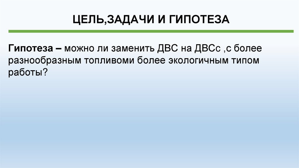 ЦЕЛЬ,ЗАДАЧИ И ГИПОТЕЗАГипотеза – можно ли заменить ДВС на ДВСc ,с более