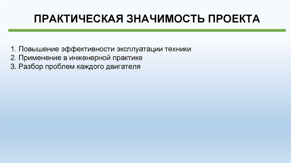 ПРАКТИЧЕСКАЯ ЗНАЧИМОСТЬ ПРОЕКТА1. Повышение эффективности эксплуатации техники