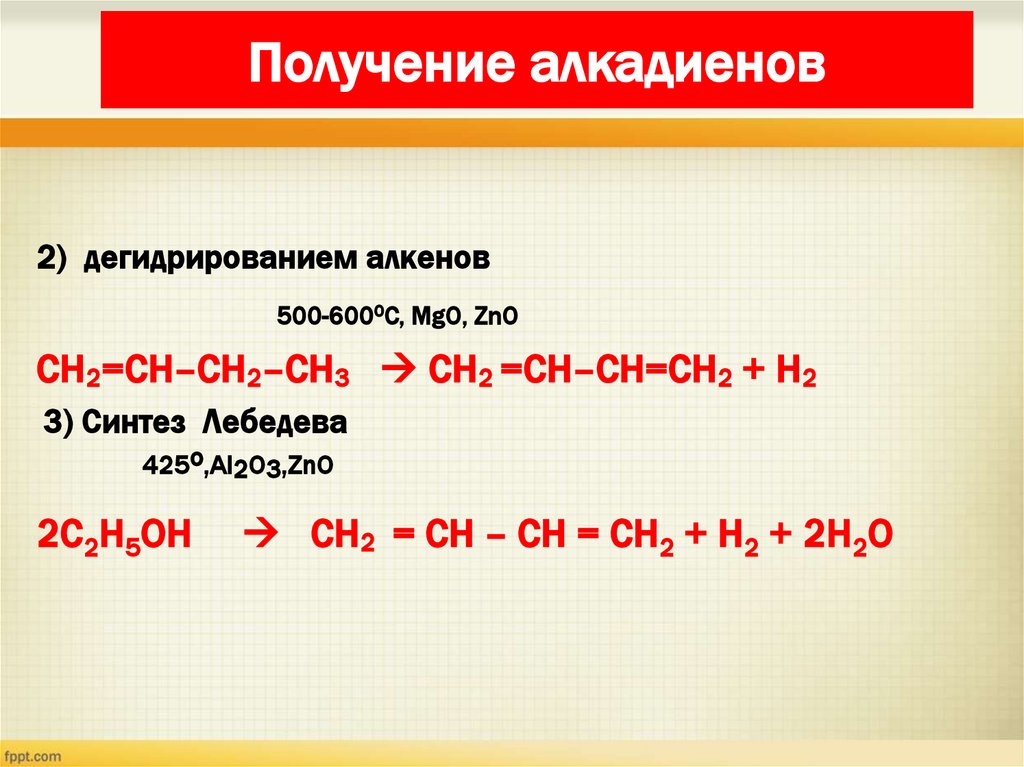Получение алкадиенов2) дегидрированием алкенов