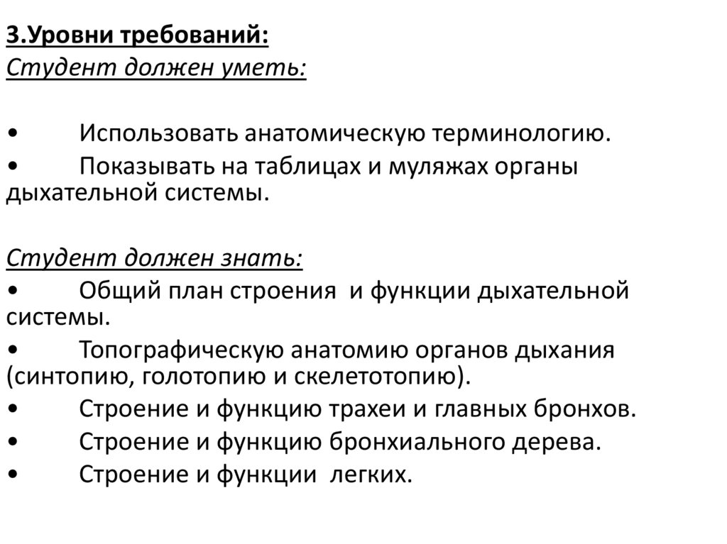 3.Уровни требований:Студент должен уметь: