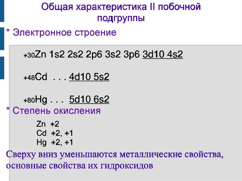 Общая характеристика II побочнойподгруппы