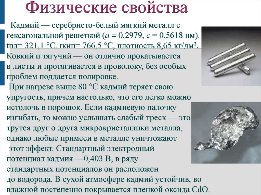 г/см³. Легко плавится, при нагревании на воздухе