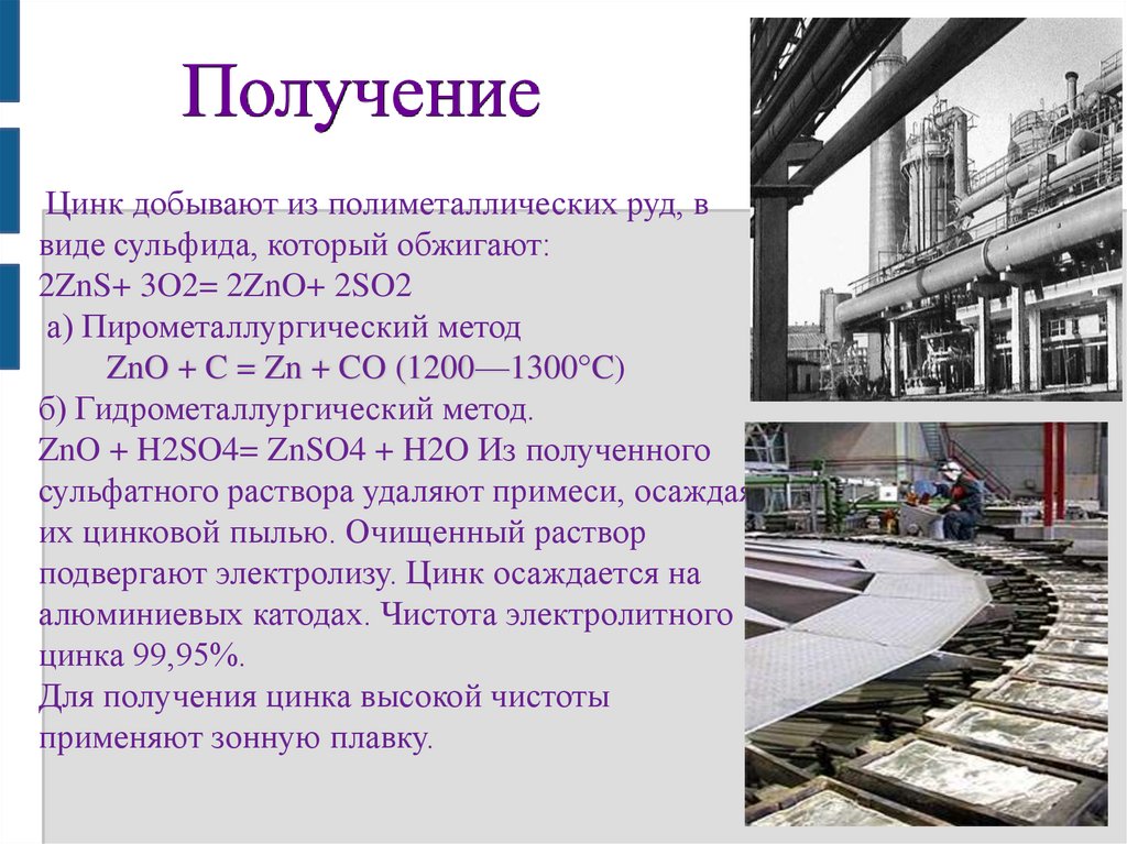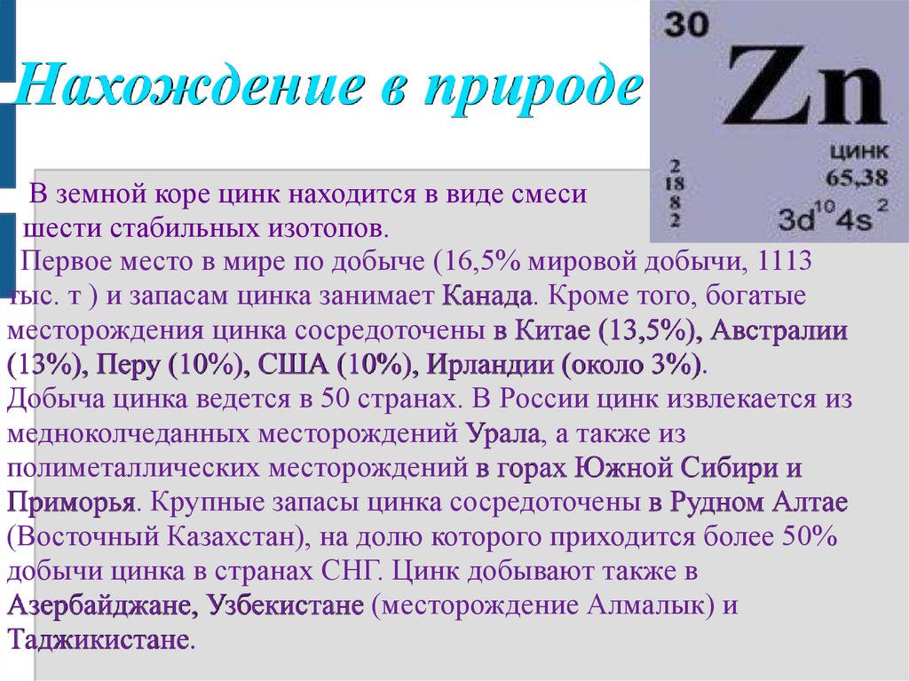 Добыча цинка ведется в 50 странах. В России цинк извлекается из