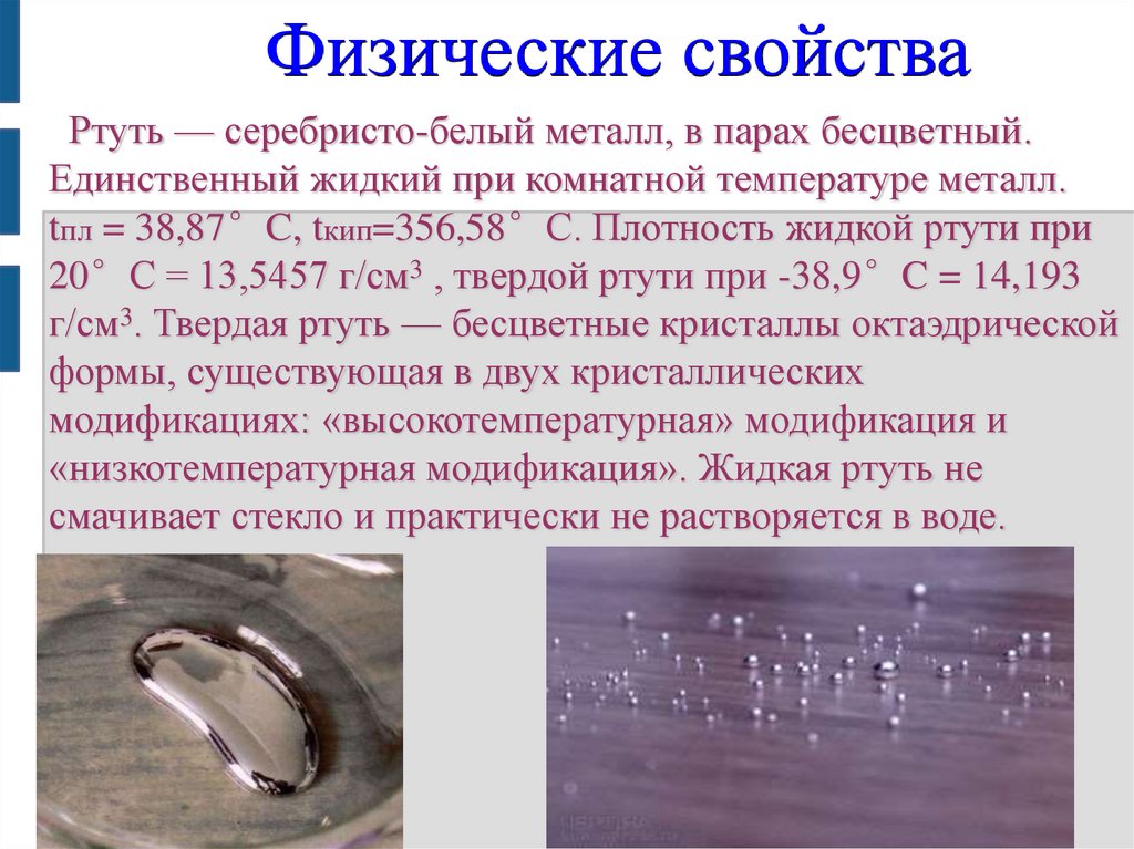 покрываясь тонкой плёнкой; плотность 8,09-8,20
