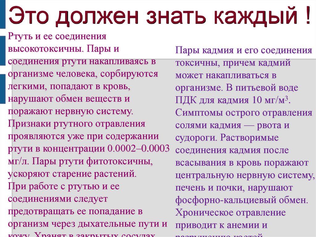 Это должен знать каждый !Ртуть и ее соединения